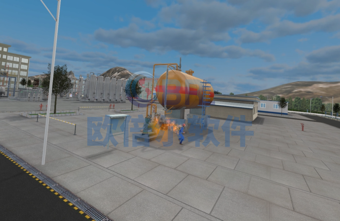 在体验模式中,学员以第一人称视角跟随剧情发展。系统通过人物对话、特效、音效的有机结合,展现了从发现泄漏、错误决策、违规维修到爆燃事故发生的全过程。