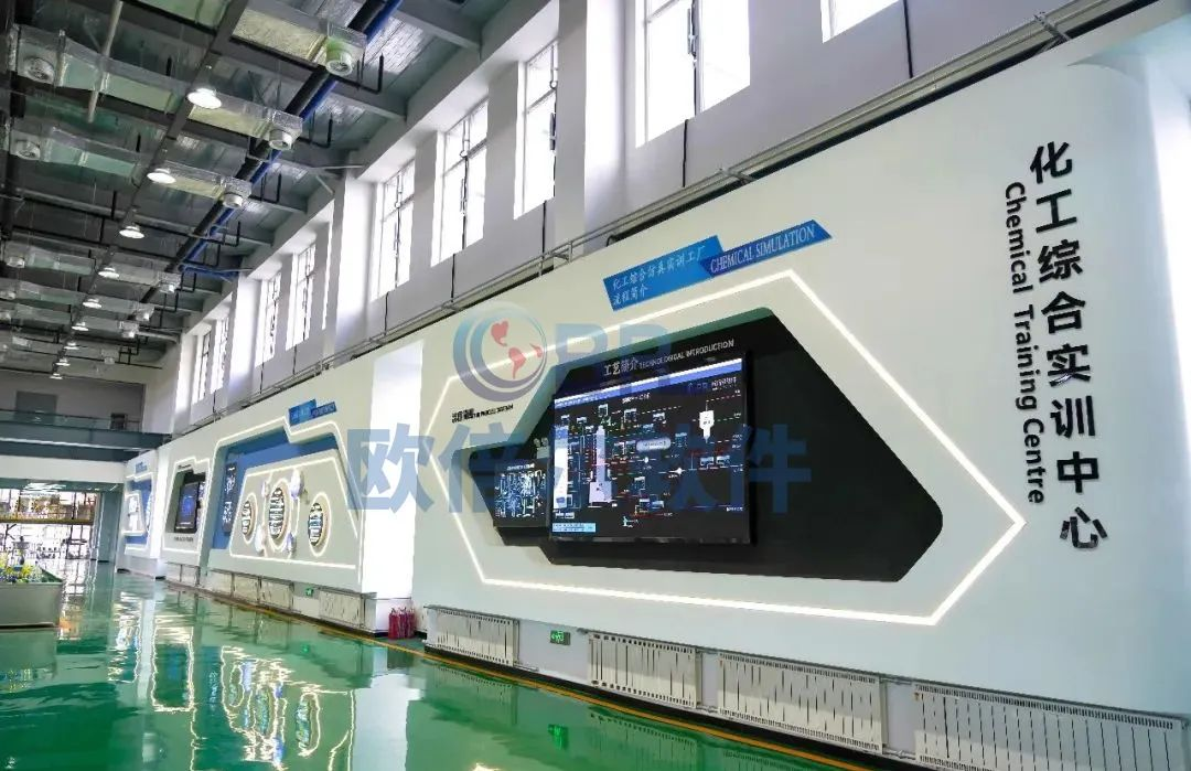 连云港职业技术学院“‘数智赋能’石油化工产业链虚拟仿真实训基地”是省级职业教育示范性虚拟仿真实训基地培育项目。该基地总建筑面积4776平方米,总投资2700万元,由北京欧倍尔、连云港职业技术学院及连云港石化有限公司合作建设。基地以连云港石化丁二烯生产装置为蓝本,集成部署了智能化工虚实融合训练平台,可开展丁二烯高效精制工艺全流程仿真、多组分萃取精馏动态模拟等高端化工单元操作训练。绿色化学新材料虚拟工厂实训中心通过高精度三维仿真工厂的沉浸式实训场景,配套DCS操作与控制,打造多自由度仿真操作空间,有效贯通丁二烯精制至萃取精馏全流程。系统内嵌的智能评分系统,对学生操作合规性、关键参数控制工艺稳定性进行多维度评价。