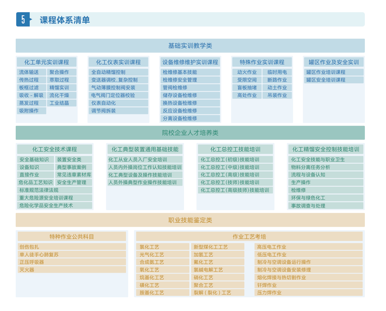 深化企业、机构、院校战略协同,汇聚跨领域创新资源,打造高水平技术攻关联合体。课程开发团队合作单位:化工教育协会、天津大学、兰州石化职业技术大学、东营职业、南京科技职业技术学院、湖北三宁化工股份有限公司、山东滨安等。
