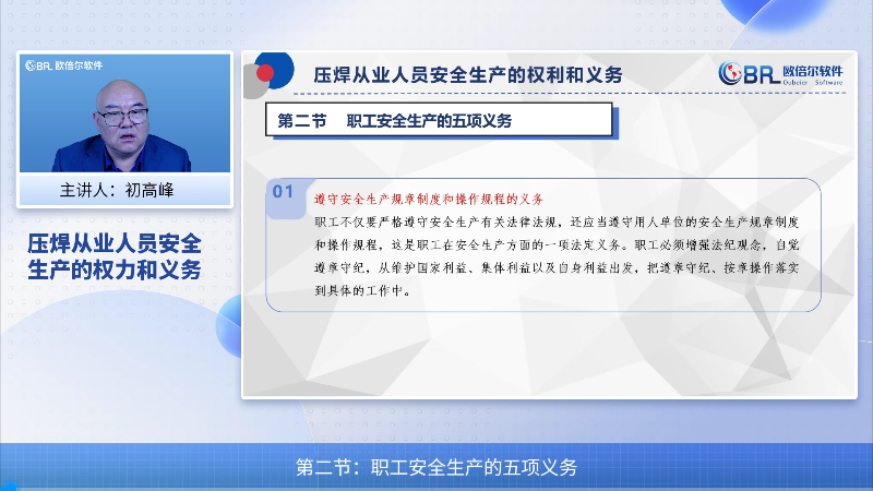 该类课程主要是围绕HSE管理体系(即健康(Health)、安全(Safety)、环境(Environment))三个核心要素展开教学的一体化管理培训课程,重点培训人员的风险识别与隐患排查、安全操作以应急处理、自我防护与综合管理等多方面的能力。例如:重大危险源管理课程,视频由危险化学品协会资深专家讲授,深入浅出讲解知识内容,将复杂的知识内容讲解得清晰易懂。